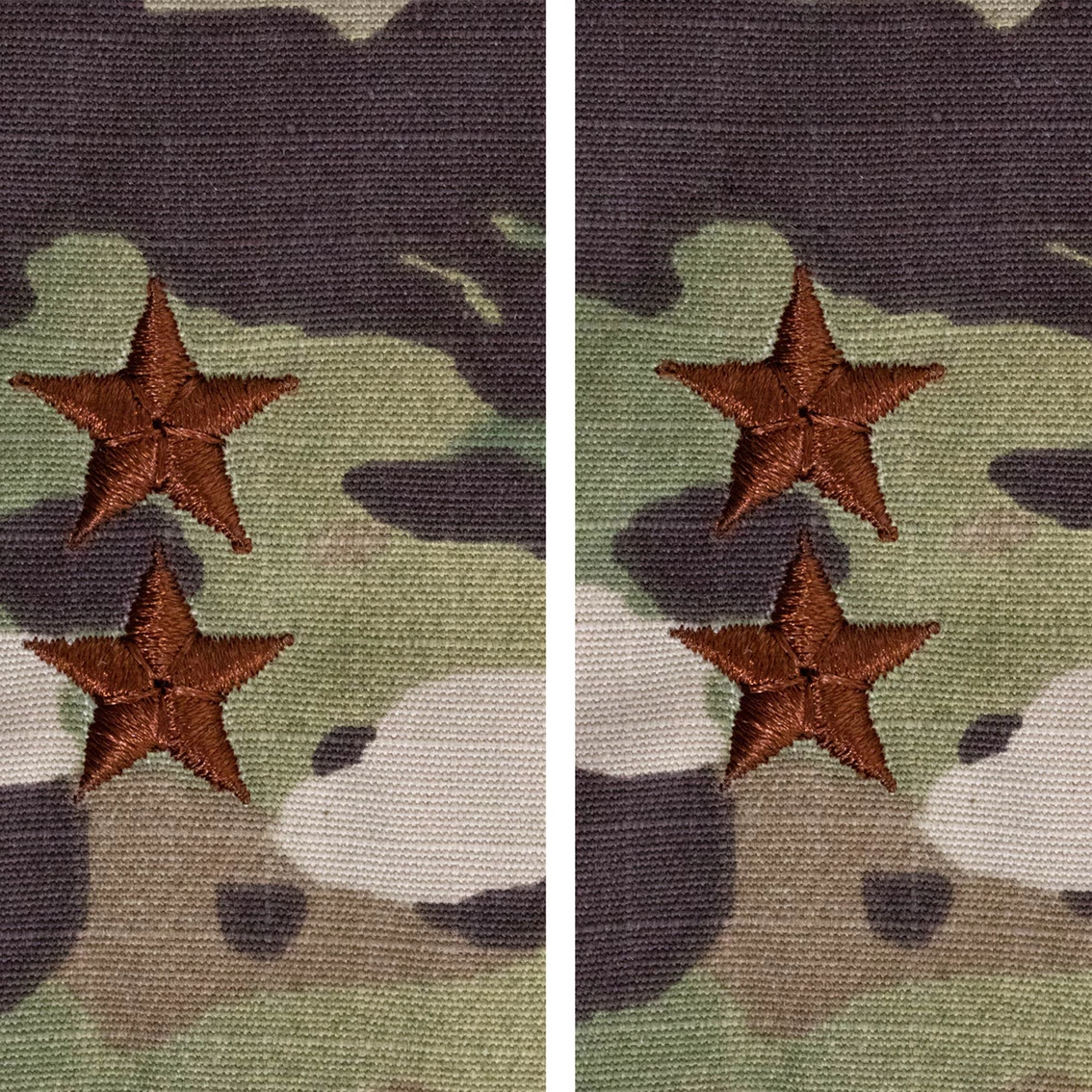 Air Force Officer Major General Pt-Ct 1 Inch Sew-on O-8 (OCP). Nametapes, Branch of Service Tapes, Rank, and Occupational Badges have all changed from the 7-color OCP material to a 3-color OCP material for better contrast. This was a change done in 2020 and is the new certified and approved material for Air Force and Army.